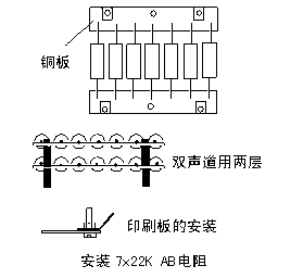 所有的电阻用Allen Bradley碳膜以取得更好的声音。7个2W22K的电阻可以换成一只3K20W的TO220封装的 Caddock 无感电阻。图3d画出如何安装7只22K电阻。