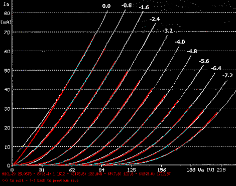 用SPICE模拟的曲线与真实曲线非常接近,几乎难以区分。真实曲线是用Audiomatica的 Sofia vacuum tube curve tracer 制作。SPICE电路模拟软件是免费的,有 Unix (Berkeley) 平台的和 Windows (WinSpice) 平台的,在Windows 95/NT下也有许多商业软件。 [原文编者:一个Windows平台下的图形化的SPICE模拟软件的测试版可以从 Interface Technologies/MicroSim 下载。]