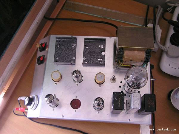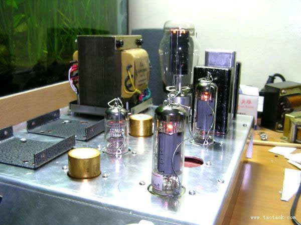 经过N月的准备,为501准备的二房终于做好了。几个月的等待和努力,故事多多,感概多多........ 首先要感谢众多朋友的热心帮助,501和二房支持的购买和制作都和朋友的帮助离不开,在此表示感谢! 言归正传,先请大家从外表上了解一下二房吧! 501到手后,估计只听了不到一个小时就放进柜子里了。说实在的,不论在哪能里推,台机上、电脑上、MP3上,没有一个能推的动的(个人意见),来声压都达不到,不是对501的不负责任吗!兰班长的501保管的很好的,跟新的没有什么区别,我当然也舍不得让它受损呀,把它包的好好的,放在儿子找不到的地方。 接下来的事,就是想如何挖掘501潜力的事了。哈哈,这期间,尽是朋友的帮助。 在边疆万事不便呀,网上邮购二房的所有东西,真是麻烦呀!总是要等待,每收到一个包裹,总是要那么长的时间,特快专递能快些,可咱用不起,只能忍受中国邮政的压迫,不过比那些包裹好些,它们受的压迫更大,个个几乎都被压扁,有些还受内伤。 收到部分东西后,利用十一长假,先搞一下吧,等不及了。 做机箱真累.................... 第一个二房开声之时,心情,哈哈,心情,不用说,DIY的同学们一定都了解的。说实在的,12AU7+6P14阴出,音质还是不错的,除了功率小了点(因为当时有些东西还未到,用了一个27厂的拆机牛,估计是45W的,250V,60MA,没有5V输出,只能用6Z4整流,电源部分差了点)。通过此次实践,感觉到501潜力巨大,着摸着要进一步提高二房的素质。想法:1)跟据手上现有的东西,想将要收到的东西,改进此电路。2)输出牛不用,心病不除,一定要先搞一对牛回来再说。 十一过后,501又入柜中。接下来又是做机箱,虽然这次用的铝板比上次的钢板好加工多了,可还是累............ 打字打的好累,大家也看累了吧,来几张图轻松下吧。 电路图:还是上次那个电路。 牛到了,机箱好了,又可以开工了。这次准备在前面加个前级。 这次不顺了,一开始焊好电源部分,还以为电源牛出问题了,结果后来又好了,到现在还在晕,没有找到原因。 加上6N3*2的前级后,从音质上说,这个前级不错的,音色很适合我,我非常喜欢。但就是信噪比不好,杂音较大,影响听音。找了二天的原因,也没有解决问题,最后只能去除前级,看看还有没有杂音了。 先上个前级的电路吧。 这次真的是不顺!拆了前级后,尽然没声音了,同样找不到原因,尽管各点的工作电压全部正常。没办法,只好再拆了从做。 第三次做这个电路了,从机箱的位置和管座的布局上考虑,加上前级后,位置小了些,一些电容都用不上了,最后决定,先不上前级了,以后再搞前级。 经过二个小时的焊接,就成了现在大家前面看到的样子了。这次比较顺利,一次通成功!(已养成习惯,在加电前,一般要对照电路图检查2-3遍) 下面谈谈此二房的表现和制作中的一些心得: 总体来说,此电路个人认为比较成熟,无须做大的改动。能过调试,感觉,输出的电容,100U是比较合适的,增大了反而影响音质,尤其是清晰度和瞬态的表现。最后能过多种电容的比较,还是选定的最初用的ROE电容,觉得此电容自己比较喜欢。(其中试过SP120U、ROE47U等一些电容) 实做和电路中改变的地方:1U换为0.5U油罐和威马0.22U,输出并小油浸。 从音质的感觉上,此电路的音色走向应该是比较中性的,声音清丽甜美,中规中矩,没有太多的特点,初听感觉并没有太多的惊喜,只是越听越有味。 通过近一个星期的听音感受(每天一次,每次4个小时左右),越发的感觉到它的音质在一点点变好,(所有电子管也均为新管)。现在已经每次开机听有停不下来的感觉,501真是不错,听上4、5个小时,耳朵不累的。 通过此次制作和第一次的制作相比,无论推力和音色上明显要比第一次好不少(第一次没有用没浸,机箱内部太小),油电容的确有自己的特点。但总的来说,推501功率还是小了点,只能说是推的正好,如果要达到很大的声压,电位器几乎快到尽头了(我一般在6、7左右听,此时可以达到一定的声压,开到8、9左右,声压较大,但我的耳朵是可以承受的,开到最大时,声音也没有什么明显的失真)。 因为再没有更好的耳机,也没有其它的耳房比较,听声时心中的标准是按以前听箱子时的标准衡量的(当然要排除音箱和耳机的差别)。 总体感觉上还有就是此电路能将501的中高频推的很不错,低频上该听的也都听的到,而且很清晰,量感上并不上很足,但速度非常快,听流行个人觉得如果不比较的话,还是可以的,听古典,501还是历害的,人声和小提琴听的真是过瘾,欲罢不能。(人声最近主要听的是:女,王菲,邓丽君,孙燕姿等;男,齐秦,许巍等)。本打算先听一下阴出的二房,最后等输出牛上手后用牛二放,但通过此次焊机,觉得阴出也是不错的,所以就先暂时不拆了,再做一个牛二放。线乱呀,本打算拆,所以就没有整理,再就是做不整齐,不能象有些DX一样,搞出来的和艺术品一样,不过信噪比还是相当不错的,除第二次外,第一次和本次二房都没有交流声,而且噪音很低,把音量开到最大,几乎听不到什么杂音。 一个意外的发现就是:推PX100。本打算听一下低阻耳机有什么音来着的(推低阻耳机,有噪音,而且比较大),却发现它能把PX100推的服服贴贴的,原来100低的毛病几乎没了,听着100低音不打头了,总体感觉100有了很大的提高。 下一步打算再搞一个牛输出耳放,哈哈,平衡师傅的牛已到手。此牛用料真实在,二放牛能做成那样,早准备好的牛罩尽然按上前的安装架的方向进