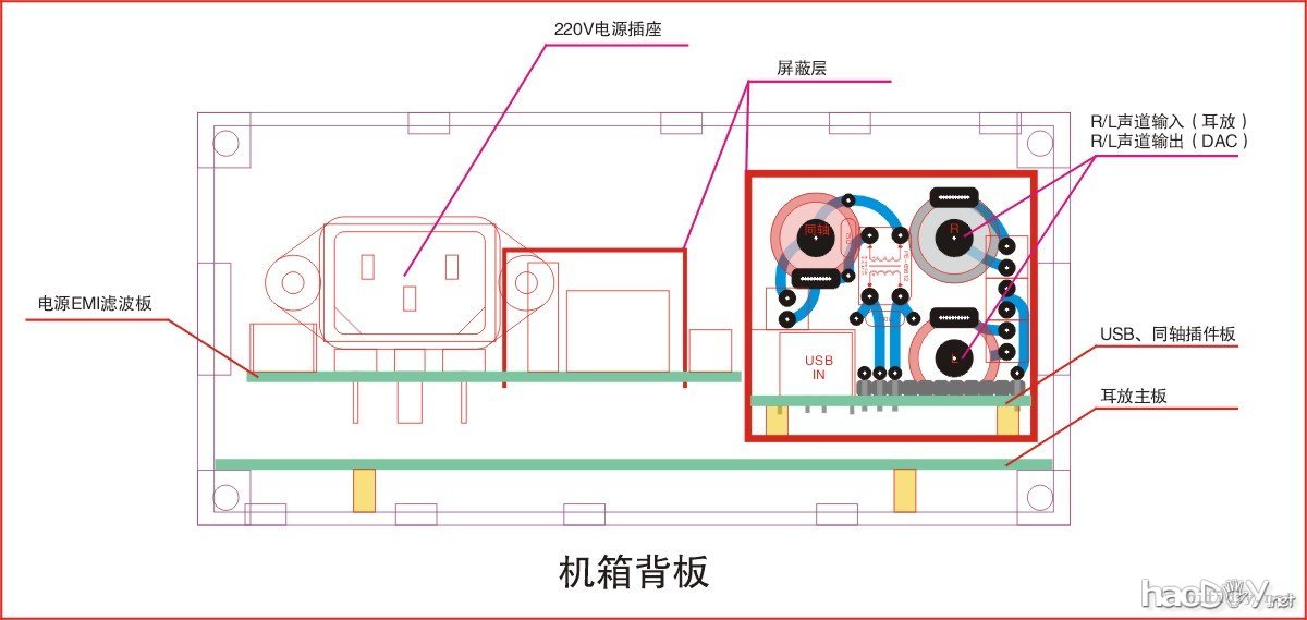 一、要求: 1:小机箱; 2:耳放与DAC即可以单独使用又可以一起使用(DAC要满足同轴与USB); 3:不能有多余的开关及插座,需自动切换。 二、确定: 1:机箱尺寸: 宽145mm,深254mm,高68mm 2:电路选用: DACDIR9001+PCM2706+双并联WM8740 耳放拜亚动力A1线
