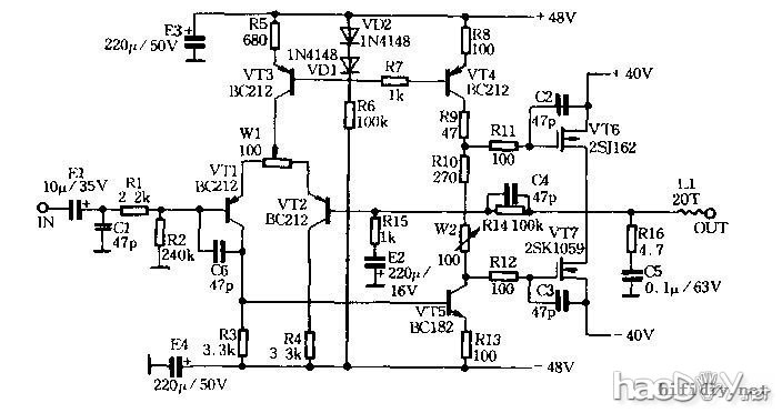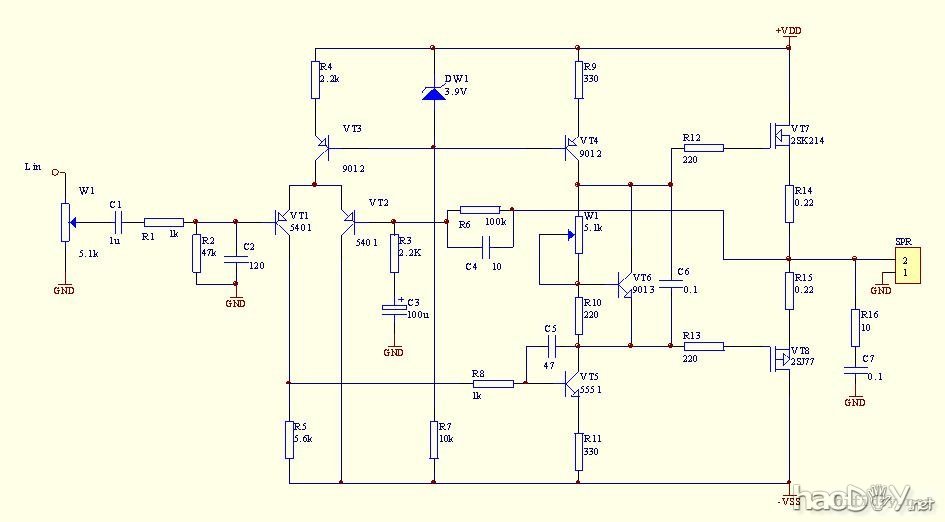 第二张图前级用了运放做驱动,稳定性好了许多,但由于运放音色的影响,使得后级MOS输出级失去了本来的特色,不是我喜欢的类型
