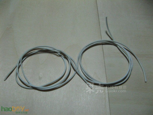 ![]() 分出两根等长的、大约比耳机头罩部分长两倍的耳机线。
