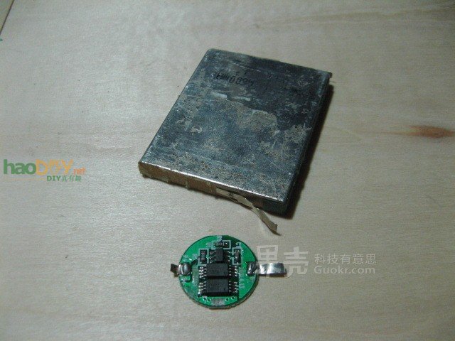 然后是主角的动力源——600mAh的旧手机电池(说是电芯更恰当……)和锂电池保护电路。