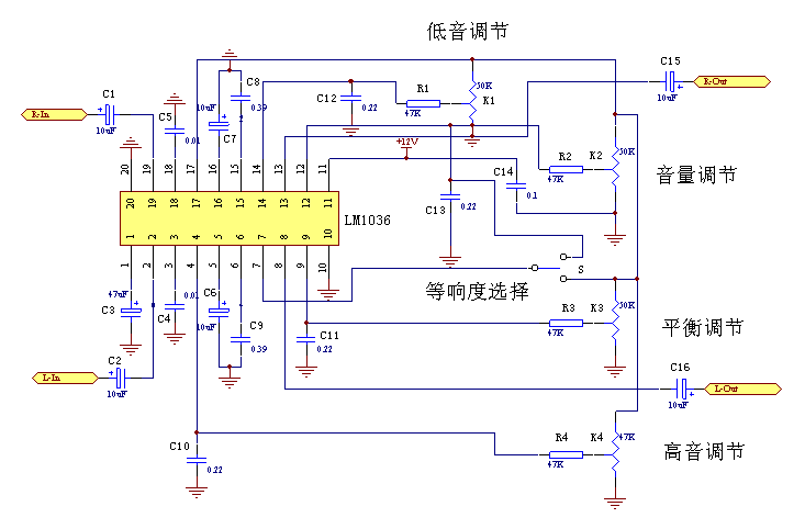 用LM1036制作的音调前级电路(附电路图)