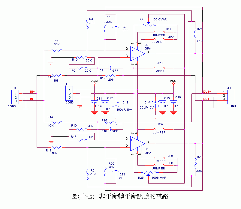 再將圖(十)的電路巧妙的切開來,便形成如下圖這樣“具有高CMRR的全平衡大器”!