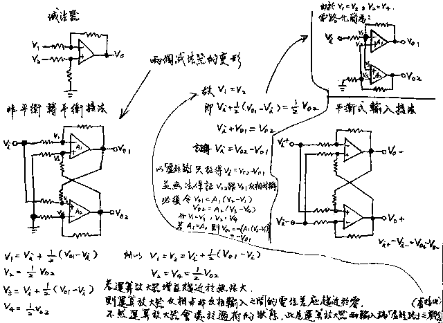 當時對這個電路非常感興趣,發覺這個全平衡放大電路其實是由兩個減法器所構成,