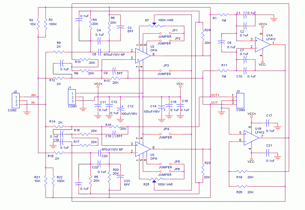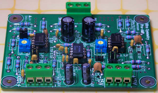 這個圖是加上 OP輸出中點微調及頻率補償電容、電源旁路電容後的樣子。