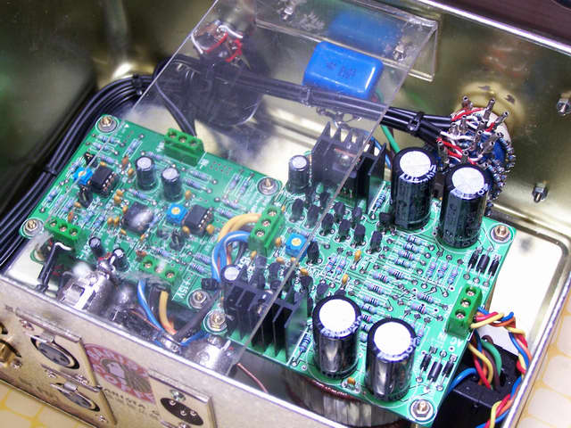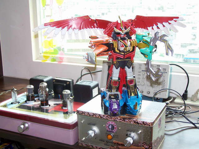 大器疊在一起,左邊是我所設計的 Ultra Symmetry 穩壓電路,穩壓電路下面是環