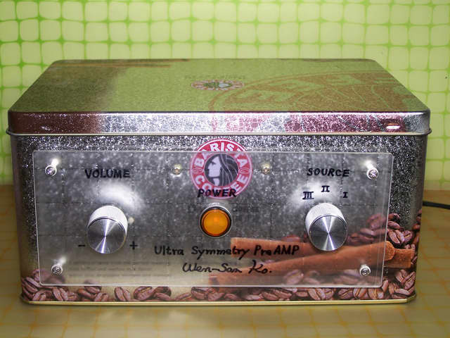 Ultra Symmetry 平衡式前級放大器當然是裝在餅乾盒子裡。
