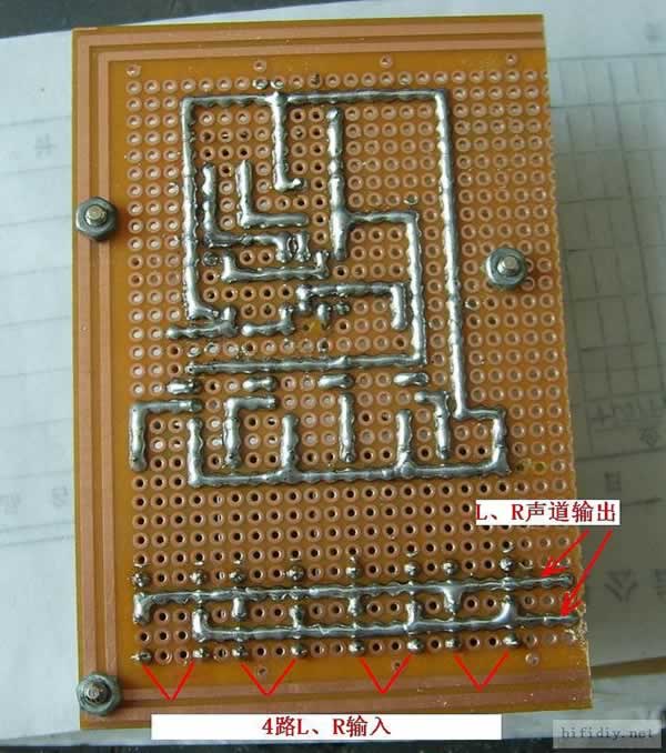 如果反过来,输出当输入也是可以的,这样可以把原来的4组输入作为输出慢慢就学懒了!不腐蚀了,洞洞板一个cd47017 4路音源切换