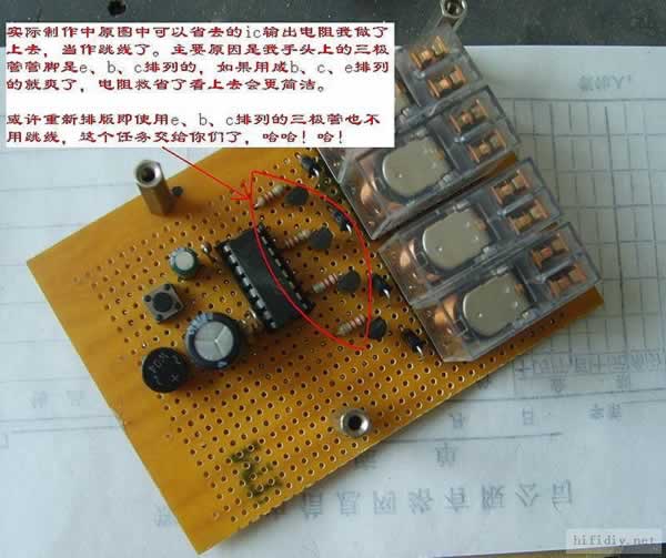 还是喜欢用ic的实际脚位来画图,这样方便制作。同时把驱动三极管位置也改了一下,这样ic的输出电阻也省了