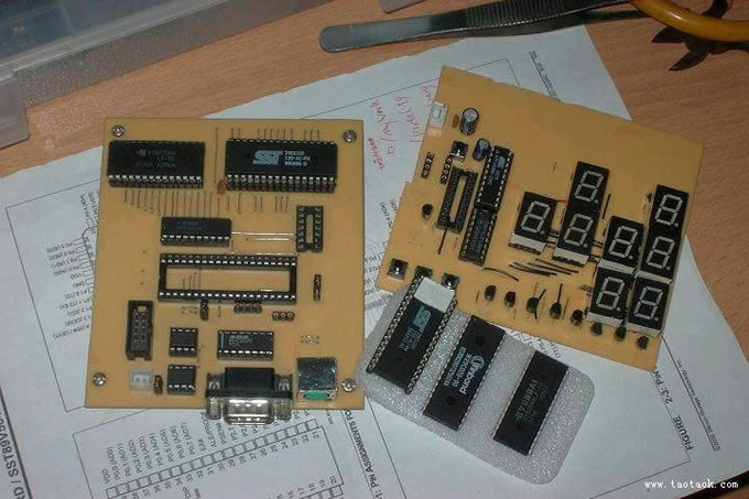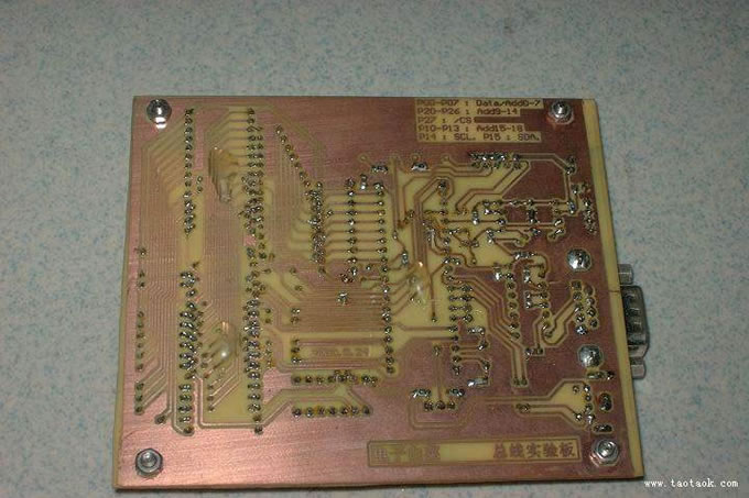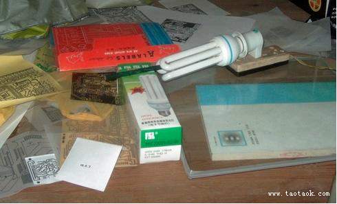 热转印制板: 优点:快速、方便、安全、直观、成功率高 缺点:需要价格昂贵的激光打印机 感光板制板: 优点:无需价格昂贵的激光打印机 缺点:速度慢、有点麻烦、不安全、不直观、失败率高 热转印制板基本流程: 1、用protel 画出您所需要的印刷电路板图 2、将上图打印到热转印纸(注意不要打印顶层丝印图) 3、将热转印纸上的碳粉通过热转印机转印到敷铜板上 4、将敷铜板放入三氯化铁腐蚀液进行腐蚀,腐蚀后如图所示 5、用汽油清洗电路板上的黑色碳粉则出现如图所示 6、用电路板打孔机进行打印,则出现如下图所示 合适人群:我在读书,我要做实验板,但我没钱。 不适合人群:我有钱买实验板,我用老板的钱买板,我家开制板厂。 目的:让大家会用感光电路板,做好看的板 搞什么都要投资的,不过做电路板中投资最少的应该是热传印和感光板了,热传印我没 做过,主要没有激光打印机,楼下的复印店也不愿意帮我打印到热传印纸上,说怕伤了激打, 哼,没办法。只好做感光的。 1.准备好你的电路图: 第一次做不要把线画的太细,最好就是用一点碎料板来做做,自己估计好感光时间。以下我 用我以前的PCB来做实验: 2.用你的打印机打印出来吧: 打印的图纸一定要是你认为最漂亮的,如果用喷墨,请用贵点的薄的那种照片纸(当然不要 象照片那么厚,呵呵)我的纸就是很薄的了。打印出来后仔细观察,有时候有断线。没错, 只要你眼睛观察的出的断线,感光板就跟你照做不误。即使有一点问题,都要重新印过。损 失一张纸比损失一个板要来的好,另外,有人喜欢用半透明的硫酸纸,其实不好,硫酸纸主要的打印效果不好,墨水有时候?散开来,本来1MM的线就变成1.2MM,你就麻烦了。当然,如果你的线距是2-3MM这么宽,就 没问题。 如果你有台很贵的激光打印机。。。那上面的当我没说过 3.感光板。很多人问我价格,其实在广州,9元就可以买到10*15CM的板了,很够用了,我 现在做过的最大的板也就是10*15CM的,上面可以弄很多元件了,而且我现在开始用贴片 了:)如果买质量好的就13元吧。一般做感光板是单面居多,也有双面的卖,不过做双面的 要讲点技术了:) 上面写着感光需要8分钟,如果象我一样用白纸覆盖感光的话,8分钟你就中招了,人家写的 8分钟是对透明胶片的,我的白纸,3个8分钟还差不多 4.准备感光设备。这就是我的感光设备了,很普通,用高功率的日光灯就可以了,不过, 用日光灯请选择祖国品牌:佛山照明。 如果你资金充足,可以多买几个,并排照,这样成功率会比较高。如果你象我这么穷,只能 买一个佛山照明,那感光过程中就要定时把灯移动一下,保证感光均匀。 做感光板还有有玻璃,用来压着板和打印纸,玻璃我是从街上捡回来的,也可以买。买最厚 的,越厚越好用。因为厚就重,压的就紧,也防止不小心碰了玻璃引起的移位。总之,要重 的。注意,不要用磨沙玻璃(台下飞来香蕉~~你当我傻子啊??) 5.打底。 什么叫打底,先把你的PCB纸反面用透明胶贴好,把感光板的保护层去掉,再把PCB纸反面覆 盖着感光板的感光面,用透明胶粘好,这一步最好不要在强光下干,不过你也不用过急,生 怕感光板是见光死的东西,其实,感光层笨的很呢:) 这一步没有照片,呵呵,都说操作要快,难道还打闪光灯照相啊?你赔我板子啊~~~~ 6.感光开始。 哇。。佛山照明就是牛,国货万岁~~~~~ 注意如果你的灯太小——象我的,最好勤点移动灯泡,让其感光均匀。移动中不要碰动玻璃 哦:) 大约20分钟就可以了,不怕感光过久,就怕过短罢了。 7.准备显影粉,这个东西1元钱,开400ML的水,用于显影,当感光板感光后,放在水中泡 个1分钟,线条就出来了。 有人问我400ML水是多少,其实我也不知道,直到我发现这个。。。 注意为了节省,我一次就开了一包粉了,不过装起来,用的时候倒一点,用过的显影水千万 不要再用,即使是几个小时以前用过的。 8.显影设备。。。月饼盒一个。。快到中秋了,别问我那里找容器。显影过程中最好也不 要在强光下进行。以前有个同学打开他的佛山照明来观察这个伟大的显影过程。。结 果。。。。。*—(—% 9.显影过程是最激动人心的了,显影成功,基本就代表成功。显影时不要太心急,如果 有些线条没有完全露出,或者说铜的部分没有完全露出,请等多会。经验告诉我:只要不是 感光过度,你的板子在显影水中泡半个小时是不会出问题的(虽然正确做法是泡1-2分钟) 显影后的板,明显看到:改露的都露了,不该露的没露(啊??我在说什么了??) 10.之后,当然是腐蚀了啦,一般不用说到用高温腐蚀这么严重的,我的不就是一个小桶子 而已?注意,把板子朝下位于液面处,腐蚀速度最快(看图吧),这句话总有人不信,老是 把他沉底,呵呵,这是你的事了。 还有,在腐蚀水中放5-6个铁钉,这样会加快速度,是超级加快。不信?也算了。 如果象我这样腐蚀,整个过程不用人为干预的,记着:液面,铁钉。10分钟后来看吧,呵 呵,完全搞定。又不信???forget it~~~~ 腐蚀就等你该等的时间,其余时间不要动板子,更不要用任何镊子去动它,竹的都不行。因 为感光层泡过腐蚀水会特别脆弱,你碰一下都会小一点。我以前就中招了,断了几跟线,都 是镊子刮断感光层,然后被腐蚀的。 11.好了,基本完工。看看成果吧: 那层残留的绿色东西可以留着,没关系的,感觉可以当助焊呢,还可以保护铜线不氧化。如 果你的审美观和我不同,那也可以用刚才的显影水泡,或