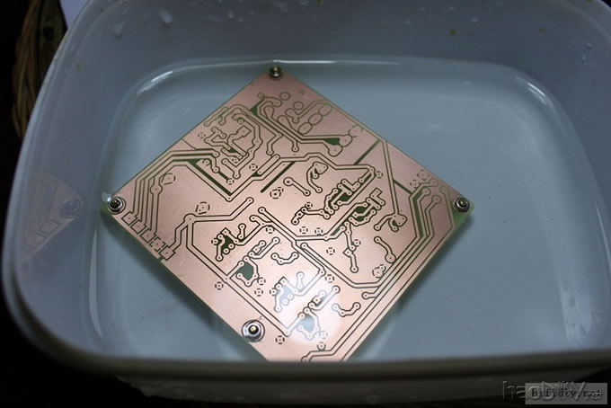 在家里做PCB,还是要讲环保,把PCB放在水里钻孔,这下就不会弄得到处是有害粉尘啦。