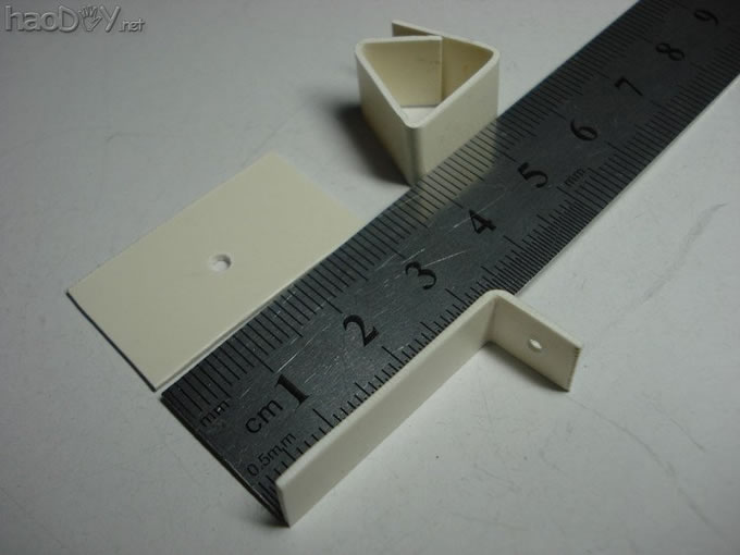 用PVC裁成细长条,个中一端折一个弯(用于直接插入三角形电机支架的三角旷地中),而且在30mm阁下的长度再扭一个弯。