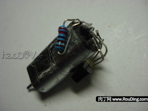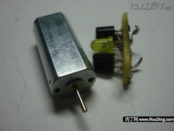 选读内容——搭焊: 作为实行可能说作为进阶,也可以省去电路板,直接对电子元件的引脚举办搭焊。 由于要环绕电机直接搭焊,为了防备电机的金属外壳把电路给短路了,可以在外壳上包一圈透明胶布。