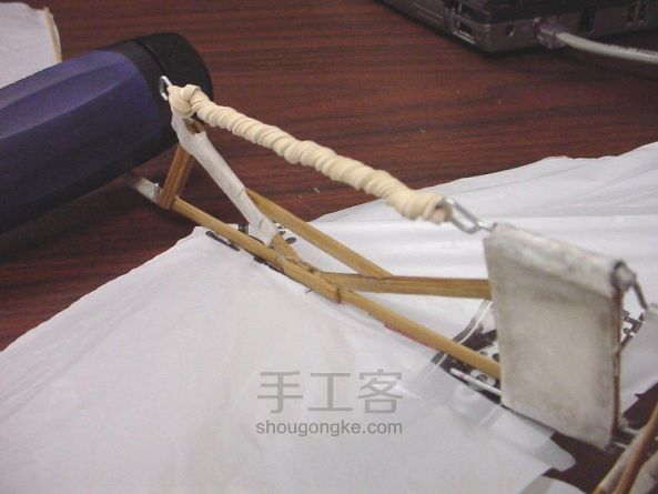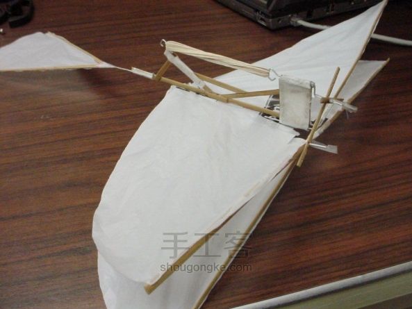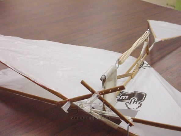 这一步是机尾部分的组装。先打磨尾桁然后粘到机身上,用滤纸加固。用钳子把尾桁向上掰大约10°。 第48步: ![]() 飞行测试和调整 第49步: ![]() 拧紧橡皮筋然后放手做飞行测试。顺时针方向和逆时针方向都尝试一下,看哪个效果更好。 第50步: ![]()