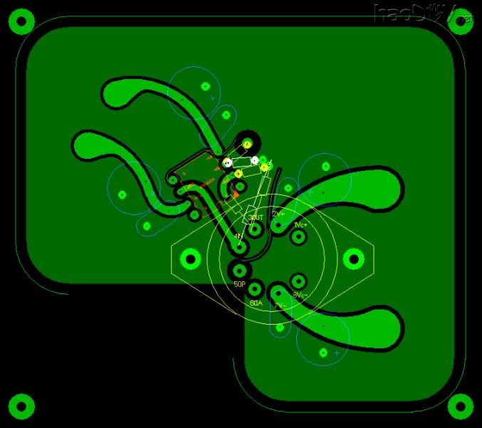pcb设计特点 1.两ic之间信号传输距离最短(相对而言) 2.信号线受地线铜箔保护 3.信号地、电源地各走各的道,完全分开 4.“一点”接地分为信号地线点与电源地线点两点 本板主要是吸取了47labs的设计思路,其次是mbl6010d的设计思路,元件参数以xp-7耳放为准,电源板可用mbl6010d的 输入电阻、电容在正面,其它电阻在背面 两ic间距1mm,如果LH0063干扰到797,需要在其中加入一片0.5mm-0.8mm的铜板做屏蔽,铜板一头焊在电源接地点,0063的外壳也必须接地 台湾有人做了LH0032+LH0033前級,据说效果非常好,感觉843军用版+LH0063军用版这个组合应在其上,廉价的方案就是5534或797+非军用版0063,应该也不会差 ![]() ![]() ![]() |