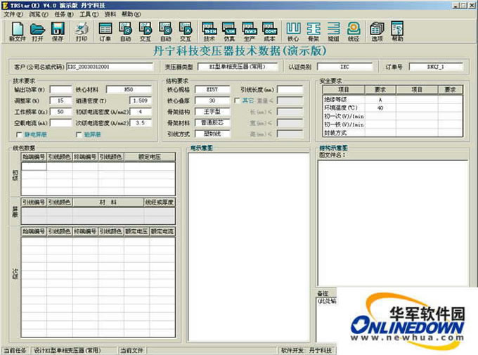 TDStar E4.0 是一款适用于EI冲片式铁心变压器设计的软件。 > > 铁心片规格包含三个系列:EI28-EI133,EI30-EI150,GE10-GEB40 > 铁心材料包括现在大量使用的9类30项:50H系列及国内常用牌号规格 > 漆包线库包括国标铜线、铝线、铜包铝线库及美标AWG线库(3-56号) > > 绕组:初级最多允许4个绕组,次级最多允许12个绕组,两个电屏蔽层和一个磁屏蔽层,初、次级可以选择不同的线库(如初级铜线,次级铝线)。 > > 绕组给出设计数据: > 匝数