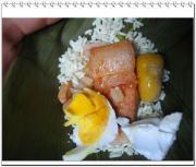 原料:粽叶,水草,糯米,枧水,花生,眉豆,绿豆,五花肉,瑶柱,咸蛋黄,栗子,南乳 包粽子的要领: 粽子叶,要此刻水中泡几个小时,以便增进韧性。