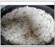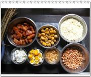 将花生,绿豆,眉豆都倒进去和糯米搅拌。