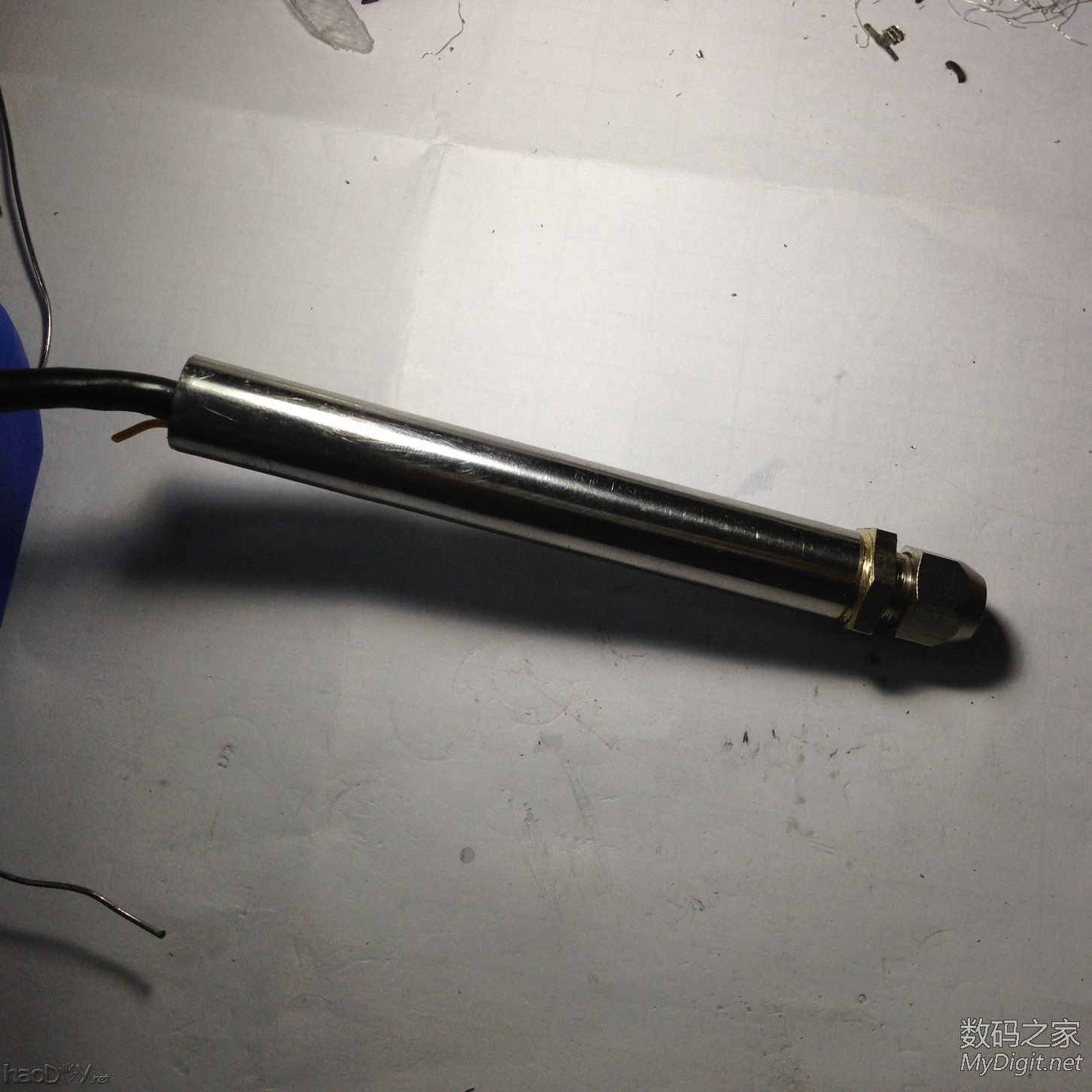 (责任编辑:admin)开始想用木条当触点的。。。后面证明是错误的。。。。 ![]() ![]() ![]() 还幸苦的打孔了 ![]() ![]() 选择触点的触片 ![]() ![]() 失败的过程。。浪费表情,浪费时间 ![]() 后来找来两条管子 ![]() ![]() 貌似太大了。。。 ![]() 剥掉外皮。。。。 ![]() 套进去。。。。 ![]() 捅进不锈钢管。。还行。。很紧 ![]() 现在套进去定位 开孔 ![]() 画孔定位 ![]() ![]() 接触还不错。 ![]() 另一个触点。。 ![]() 焊上 ![]() ![]() 准备套上 ![]() #p#分页标题#e# ![]() 算是套进去了。。很紧的。。。。线用热熔胶固定 ![]() 准备塞进管子里。。。 ![]() 费了吃奶的力气终于塞进去了 ![]() ![]() 头子用基友胶固定 ![]() 涂啊 涂啊 ![]() 塞进去。。。。 ![]() 将胶擦干净 ![]() 插入 T12看看接触情况。。。。效果很好 ![]() 拔出。。。 ![]() ![]() 前面弄好了 该弄后面了。。。。拿出以前的青花瓷手柄(摔坏了。。郁闷)这里主要是取后面的封头 ![]() 套进去。。。配合那是相当完美啊 ![]() ![]() 握手处套上热缩管。。。 ![]() ![]() ![]() 套了2层热缩管 ![]() ![]() 手感很不错。。。。 ![]() ![]() 好吧。。如果50g的重量都叫重,那多少才叫轻??? ![]() 全贴完!!!收工!!!下回来个不锈钢牛肉。。。。。。 |