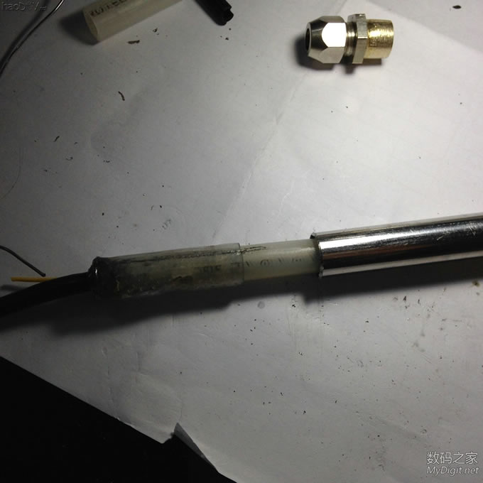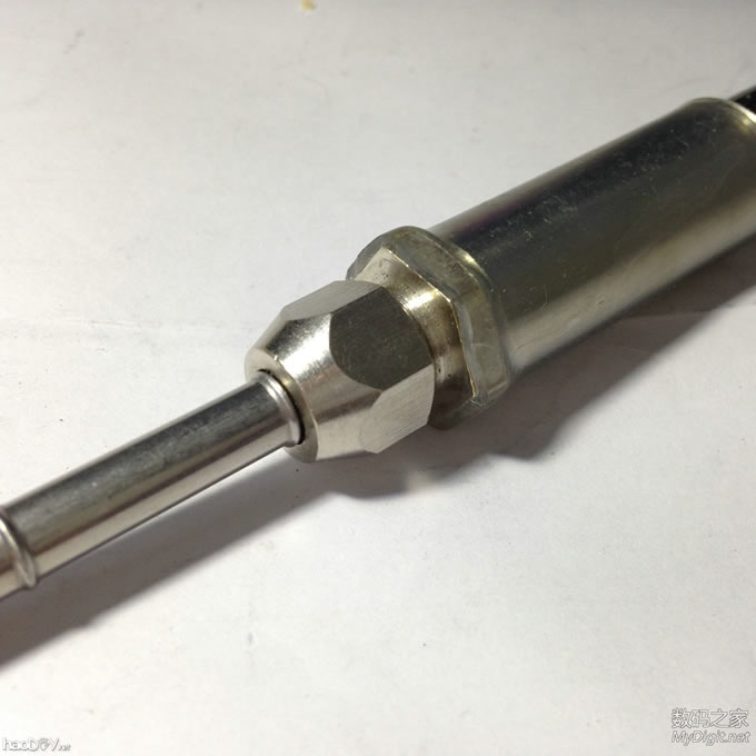 上回做的青花瓷T12白菜手柄摔坏了。。。。 瓷的就是不耐摔。。。还是做个不锈钢的吧。。。 这不锈钢管很薄很薄。。 所以我选他。。。 ![]() 这是这次用到的材料。。。 全是现成的材料 0成本 ![]() 这个叫啥呢。。。一下记不起了,反正就是气源管紧固件(在仪控备件室拿的。。一堆呢) ![]() 内孔是经过扩大的。。不然塞不进去 ![]() 不锈钢管跟紧固件的螺纹一样大。。。后面再处理 ![]() 有间隙。。 ![]() 剪掉 ![]() 应该差不多了 ![]() 这样就OK了。。。螺母扭紧就会压紧烙铁芯了。。。需要更换烙铁芯松开螺母拔出插入即可,比买的更加方便快捷 ![]() 螺纹跟不锈钢管一样大。。需要磨掉 ![]() 磨好了。。。。 ![]() 试下合适不 ![]() 松紧度很合适 ![]() ![]() 好像还不错 ![]() 切了三根管子。。。。。这里我选择最短的一条(最长的准备做个牛肉白菜) ![]() 楼下继续