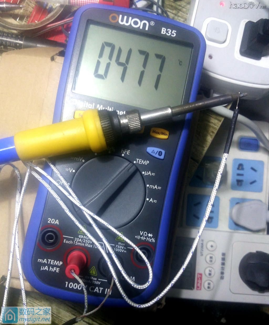 (责任编辑:admin)![]() ![]() 准备接线 ![]() 接线完毕, 20V笔记本电源用捆扎带固定在风枪的控制板变压器上面, 挺合适的。。。 ![]() 为了少开孔,风枪和白菜共用电源开关 下面为加热中。。。 ![]() T12烙铁最大功率,实际风枪待机也有4W功耗 56.8-4=52.8W,很够平时用了 ![]() 一左一右,互不影响,满意。。。 ![]() 实测最高温度如下 ![]() |