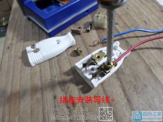 找来一个台灯调光开关、一个2P插座、一条电源线。