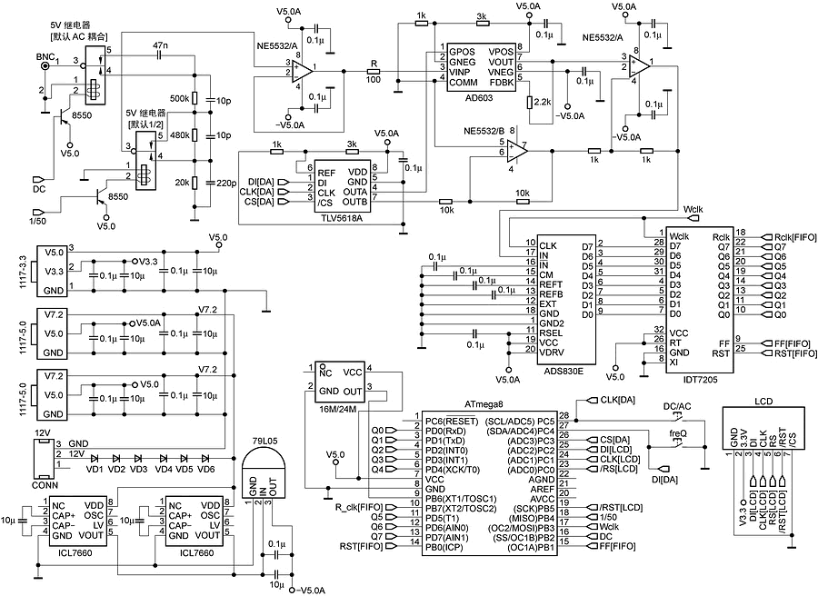 一年前,在《无线电》杂志上看到一篇示波器的连载文章(作者是魏坤)很是心动,希望自己也能亲手DIY一个。但当时材料、实力有限,于是笔者拼命的研究文章中提供的电路图和使用的芯片资料。现在,自己终于也能DIY一个了,当然,性能远远没有那篇文章介绍的强,但软、硬件技术及制作难度很小,容易让DIY爱好者们自制成功。在这里,笔者愿和大家分享一下制作过程。