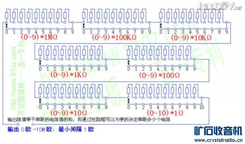 受坛子启发,最近DIY了一个迷你电阻箱,来凑个热闹,么啥技术含量,不过还是实用的。 做法很简单:把拨位开关排到万用板上,管脚之间焊上贴片电阻,按图连好接线即可,最后用磁带盒做外壳。 ![]() ![]() ![]() (责任编辑:admin) |