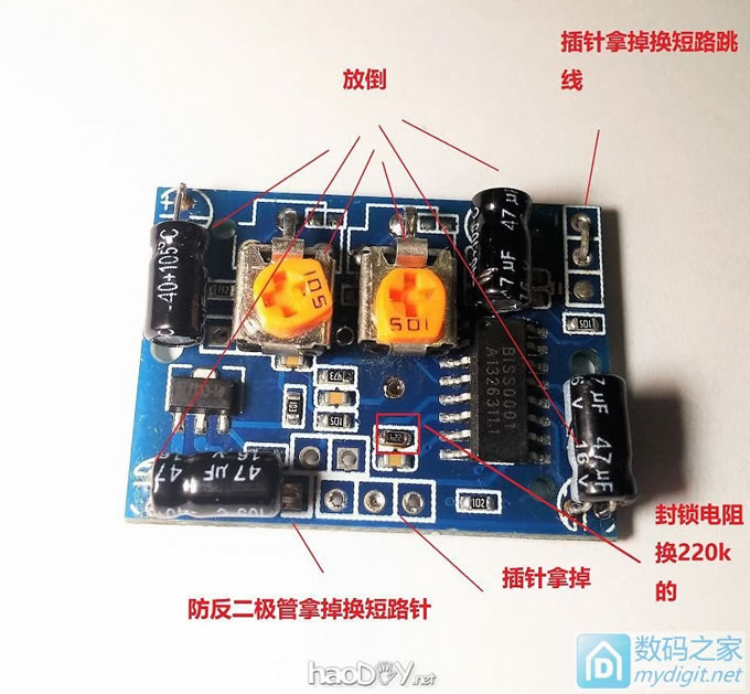 裁好背光模组贴到液晶背面 ![]() 由于增加背光耗电量大幅提升,需要改装锂电供电 4056的充电板 现成的很便宜 侧面开槽 以便放入usb接口 ![]() 这面也需要 ![]() 剪一块这个 ![]() 粘里面 ![]() 开槽部位 中段再开条缝 以便能嵌入micro usb 接口使其合上后盖后可以夹紧接口防止松动 ![]() 充电板 磨掉一些 ![]() 双面胶贴好 ![]() 由于锂电供电了 还需要一路4v转1.5v的电源 手底下找遍各种板子 就没能找到 一个合适的低功耗稳压ic 常规的三端稳压是不行的, 静态功耗ma级 对于这个 工作电流只有16ua的温度计来说 耗电太大了,又没有 类似6206a之类的 低功耗降压ic 静态电流只有8ua左右 不能为了这1毛钱的ic花10元的邮费,翻遍天找到 块儿旧手机板子 发现三颗5脚线性稳压ic 资料查不到 实测 找出管脚定义 如图 这类5脚稳压ic 管脚功能多数 这类排列 红色箭头是 en使能端的下拉电阻 通过测量为10k 推导出 使能端的输入电阻在k级别就可以了 ![]() ![]() 这张图是me6219的数据表,类似的5脚稳压ic 压差750mv 通态静态功耗65ua 和6206的8ua没法比 但也比较低了 关断状态只有0.2ua 但是我要求它一直工作着 所以无意义 我主板拆的这个5脚 性能是优于这个的 后面会说 ![]() 找个地方焊好 ![]() 飞线的就是 就地取材 电阻用了一颗2.2k的 实测en脚电流紧0.2ua 和上表儿6219一样 但通态静态功耗是25ua 比me6219 要低 压差只要不到0.1v就行 ![]() 插充电器测测电压 ![]() 很精确 25ua+16ua的温度计功耗 耗电已经41ua了虽然不大 但是我想把背光没有点亮状态的静态电流控制在100ua以内 对后面的传感器 升压板 什么的提出了要求 ![]() 楼下继续。。。 1.5v供电和充电板ok了 需要 改造升压板了 3608芯片的升压板 最大电流2a 30v 放这里有点大材小用 不过也没别的办法 手底下原件资源有限 ![]() 6脚的芯片 带控制脚 就是第四脚 ![]() #p#分页标题#e#箭头所指 被直接拉高在高电平 处于一直工作状态 电流很大,为降低功耗 必须割断 引出控制脚来 连接到感应板输出 ![]() 拆下割断 ![]() 割断还是一直输出 加个下拉电阻 ![]() 再测无输出了 接线测试一下 受控 不过还没来及高兴 发现停机状态的静态功耗竟然有40ua 这可不行 没干活耗40ua 开玩笑吗 ![]() 查数据表 发现en 0v时的静态功耗才0.1-1ua 我的怎么这么大 ![]() 分析典型应用电路图 发现 虽然芯片停机状态功耗极低 但红框内的两个取样电阻是造成耗电的元凶, 那个蓝色的电位器100k的阻值 看看公式30v 时它阻值整在100k已经是取样电路最小的功耗状态, 实际是相当小,但是对于这种低功耗的应用场合取样电阻造成的功耗都必须要考虑的,于是另寻他路 ![]() ![]() 选择外接mos 管做开关器件,又是一通找 愣是没找到个合适的贴片 n沟道场管 我的大部分废板子都没放在手底下 最后想到 保护板上的8205 共漏双mos 以下是参数 再合适不过了,我用的6脚的 只用1 2 6 脚 另一颗空着不用 ![]() 这个图是感应板 数据表里的一个图 拿来大概用一下 左面是感应板 out是输出 高电平 三极管导通使负载工作,把三极管换成 mos就是我想要的,为什么非用mos 为的高输入阻抗 的低导通内阻 三极管的be结 驱动电流太大不适合低功耗场合,场管的gs驱动 电流几乎为0 导通压降几乎为0 (升压板工作在ma级的负载) ![]() 于是复原电路 就地取材 割一小块空焊盘 用来放置 mos管 ![]() 焊好 再测非工作状态的功耗从40ua降到0 ![]() 改好双面胶贴好 准备安装 ![]() 楼下继续。。。。 然后是感应板 5元包邮很便宜 外观有点大 后面会缩减体积 ![]() 背面的菲涅尔透镜 这个体积太大了必须拿掉 对探测角度和灵敏度有一定影响 但是我只要求3米范围即可 所以影响不大 ![]() 下面是找的英文说明 不知道为什么是英文的 这玩意儿原版到底是哪里?左面电位器是延时时间 (感应后开启一段时间关闭) 右面的是感应灵敏度调节 跳线 接低电平为不重复检测 高电平为重复检测 (就是高电平时检测到人体活动开启后如果一直移动状态板子就一直开启并从你不移动以后计算延迟时间) 低电平反之 红框里是光敏电阻预留,就是是否晚上才干活,我要求全天干活所以不接 篮框是我标记的 温度补偿 下面会说 三个黄线 vcc out end 最底下两段红色英文 1 大概意思是灵敏度调节 支持3-7m 2 2 延迟时间 0.5到300s ![]() 反面的探头 红框对应上图 篮框 温度补偿预留 并联在r7 6.8k电阻上 ![]() 下图红框的电阻是运放的输出负反馈环路里面的一只电阻 r7 改变阻值可以改变放大器增益 从而改变探测灵敏度,这个阻值为6.8k 从阻值可以看出只是微调 由于感应探头受温度变化灵敏度会发生一些变化 夏天较低 于是弄个热敏电阻并在这里 当环境温度改变 时改变反馈环路负反馈电阻阻值从而改变运放增益调节灵敏度用于补偿作用,这个原图没有解释 测量找到的此电阻 我主要室内 使用 温度变化不大 不需要这个 蓝框是封锁时间引脚电阻 我改到了1秒 ![]() 下面的7133 稳压ic 就是板子上的那个贴片稳压管 看看这个静态功耗 极低只有2-4ua 最低压差才100mv 可惜没1.5v的 不然用在前面的1.5v供电甚好 ![]() 由于这块板子太高 所以必须做瘦身 改动如下 薄了一半 可以用了 上面有个二级管防反接用的 由于锂电供电 电压只有3-4 v 这个二级管的压降必须考虑了 去掉可以保证最低工作电压在3.35v左右(实际再低也是可以的只是灵敏度会下降) ![]() 探头拆掉 接好线 ![]() 