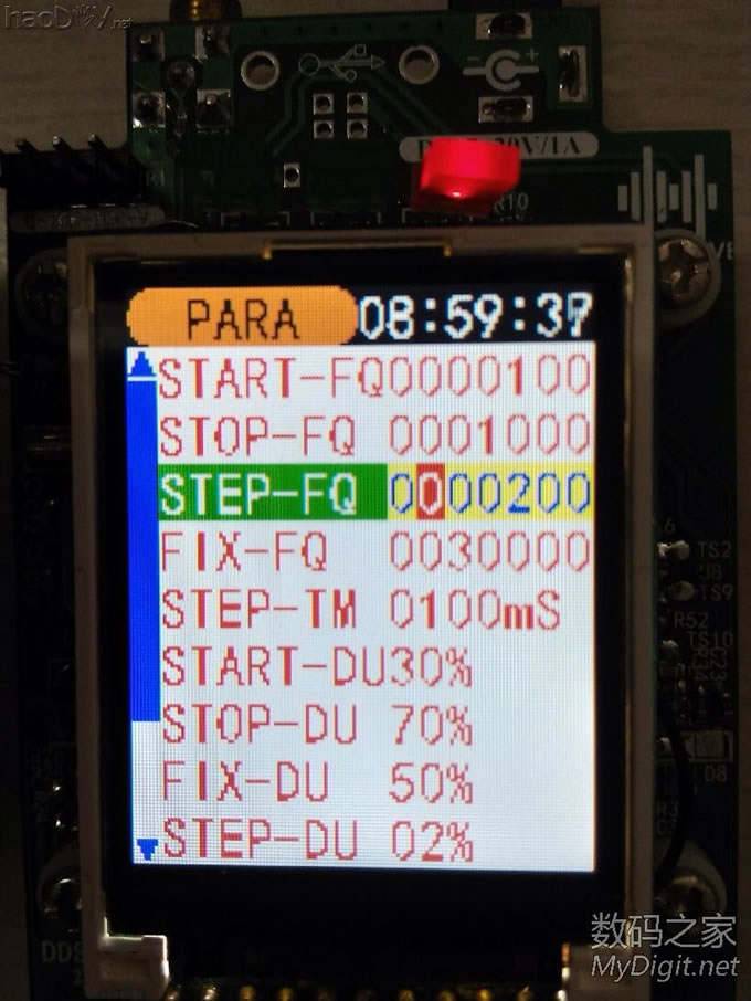 ![]() ![]() 这是点频界面: ![]() 点频->正弦波界面 ![]() ![]() ![]() 这是扫频界面: ![]() 楼下继续...... 这是扫频->正弦波界面: ![]() #p#分页标题#e# ![]() ![]() 这是扫频->方波界面: ![]() ![]() ![]() 这是设置界面: ![]() 这是设置时间界面: ![]() 这是设置系统界面: ![]() ![]() 这是设置LCD亮度界面: ![]() ![]() 这是系统信息界面: ![]() ![]() ![]() 这是部分程序截图: ![]() 我用了uc/os-ii操作系统,不算这个操作系统我自己写的代码大概有8000多行,算这个系统大概有1万3千行,64KFLASH,我用掉了56K[程序不完善,所以抱歉不能提供源代码,我有点完美主义]: 使用FFT测试程序测试输出的方波信号: ![]() ![]() 我在这: ![]() ![]() |