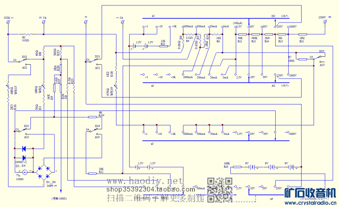 ![]() 自制第四块指针表,都发表在本论坛中。指针万用表也要自制,现在自己制作的指针表是为了达到高质量。 自制的指针表准确度较高,性能指标超过10K/V的 MF7指针表,~A、―A、~V、―V、Ω档的压刻度线的读数都很准确。 采用的表头是满度100μA的,采购成本低;精度为1.5级,线性很好,读数从1到满度100误差很小。取下磁短路铁片,竟然满度电流达到75μA,用这个表头自制电压灵敏度是DC_12K/V 、AC_12K/V的指针表。 下载并改画了本矿坛中的 “AudioCAT”大侠画的指针表的度盘,在此表示谢意,如图24。 这个刻度盘,0_中心 : 中心_满度 = 47mm : 46mm ;用的这块表头线性非常好,而且符合这个度盘。 波段开关(右轮)用1刀11掷X3 + 3刀3掷X1 = 4层,3刀3掷需要简单的改制,如图27。 波段开关(左轮)用4刀 2掷 X1 + 1刀1掷X1,如图2、7。 一. 特点如下: 1.测量范围_共27个档位,有~2.5V至~2500 V、―2.5V至―2500 V、―5mA至―5A档、~5mA至~5A档,有―100μA档,有4个Ω档。 2.电压灵敏度_交流、直流都是12K/V。 3.准确度等级_~A ~V为2.25级、―A为1.0级、―V为1.5级。 4.―A、~V、―V共用一个刻度,如图6。这块表没有采用互感器,所以~mA和~10V、~2.5V需要单独画的刻度,如图6。 5.共四个电阻档,Ω档中心Ω_分别是×1=40Ω、×10=400Ω、×1K=40KΩ、×10K=200KΩ(如果中心Ω还用400KΩ,那么电池电压就得用60多伏了); 6.用×10K档的测量电阻的方法是_将右轮放在×1K档上,+表笔插在×10K插孔上。 7. ×1、×10档用3V供电_由5# 1.5V两节串联, ×1K档用 6V供电,_由5# 1.5V四节串联,×10K档用 33V供电,最低时27V(用三块9V + 1.5V四节5#)如图2、3。 8.分左轮、右轮来转换档位,免去加装多组凸轮开关的麻烦,如图11。 9.有镜读_把表头度盘改制成镜读式的,如图23。 二. 电原理图: 1.此表的电原理图是用protel99se画的,压缩包1里有用protel99se画的完整的电原理图。 2.各个部位的图_如图10至图14。 3.图20是拧上固定螺丝最后完成的图。 三. 适合于业余自制 1.关键的几个地方的电阻是线绕的电阻,有自己绕制的和买的成品电阻,共6个线绕的。 2.尽量都用铜螺丝、垫片、固定件等。 3.外壳用旧铝板制作的,外面衬得一张画报纸,如图16、17、18。 4.用普通的波段开关,寻找容易;将右边波段开关的定位档片锉掉,如图28。使旋钮左右可连续转动,右边的波段开关要定位于DC-AC之间。 5.在自己家中就可以全部完成。 四. 制作结构: 1.全采用搭棚焊接方法。 2.固定电池的方法,如图2、3。 3.为了达到精度,每一档的电阻,都用两个以上的电阻串联组成,优点是增加功率容量、两个电阻利用±误额来组成精准的一个电阻、最好采用一个金属膜的正温差,一个碳膜的负温差,保持在不同环境温度中保持每个电阻的温漂达到最小值。 五. 调试方法: 1.首先调―mA档_调电位器WR2_680Ω,使―5mA满度,调好后就再也不动了。 2.第二步,调~V档_R10=20K*,使~2.5V档满度;~12K/V 3.调―V档_调电阻R10=9K*、使―2.5V档满度;―12K/V。 4.调~ A档_调电位器WR17_680Ω, 使~5mA档满度。 5.调X1Ω档_调R9,使X1Ω档的中心Ω=40Ω, 调X10Ω档_调R26,使X10Ω档的中心Ω=40Ω, 调1KΩ档_调R10。使X1KΩ档的中心Ω=40KΩ, 调X10KΩ档_调R20,使X10K档的中心Ω=200KΩ。 当测某电阻的电阻值时,如果指针偏左,被调试的电阻小了;如指针偏右,被调试的电阻大了(举例:被调试电阻R10=9K*)。 六. 制作指针表的关键 1.照图焊好后,一定要检查接线正确。 2.电阻一定要准确,最好是用五环的电阻。 3.采用的波段开关改制方法,只要改动一个层次的3刀3掷X1,如图27。 七. 结束语 1.从表盘刻度的10至100(举例指100满度的档)这个区间的准确度非常令人满意,压刻度线的读数可与数字表媲美,各档表现均好。 2.表头线圈是个无铝框的,感觉阻尼非常令人满意,自己感觉指针摆动不快也不慢,定位也好。 3.指针表的外壳体积压缩到极限尺寸,外壳191 x 117 x 60(加上表头、旋钮,总高80mm ),总重量3市斤6两。 4.图15是取下外壳的指针表,图 19是外壳衬上一块儿纸的指针表;最好喷漆。 5.采用100μA表头不足的是,电池用的多了一些,用四节5#1.5V和三块9V电池。 6.这个指针表是在环境温度+25℃时调试的。 以上是一块精心制作,读数可信的指针表的制作过程。 自制27档指针表各个部位图: ![]() ![]() ![]() ![]() ![]() ![]() ![]() ![]() ![]() ![]() ![]() ![]() ![]() ![]() ![]() ![]() ![]() ![]() ![]() ![]() 21. 100μ用-面板下 ![]() 22. 100μ用-面板上 ![]() 23. 镜读制作 ![]() 28.波段开关定位的改造 ![]() 27. a3_三刀三掷波段开关的改造(500mA位置) ![]() 29. 电阻的做法 ![]() 24. 指针表表盘_100μ ![]() 25. 指针表电原理图27档(截图) ![]() 26. 指针表电原理图27档(照相) ![]() |