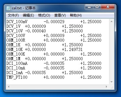 DMM 的ADC采样后转化成满量程为+-1.0的值,然后经过 y=kx+c;的线性校准作为输出的读数。在DMM内存为每个量程维护了一组kc值构成一个校准表作为当前校准系数,同时可以将这个校准表烧录到 Flash中,以便长期保存(开机默认加载Flash的内容进校准表)。 校准菜单中对应如下按键 Idty:将校准表归一化(c=0,k=1.25)。 Load:从SD卡读取cal.txt的文件,填充校准表。 Save:将校准表的数据回写进cal.txt文件。 Write: 将校准表的数据烧写进Flash。 Read:加载Flash的内容进校准表。 用户的校准过程是这样的: 准备对应量程的标准源。 准备短路线。 为将待校准的表安装SD卡。 将待校准的表切换到恰当量程,唤出校准菜单,按下Idty,归一化校准表。 短路输入端子,记录读数。(建议开启DF以便获得稳定的度数)。 将源接入输入端子,记录读数。(建议开启DF以便获得稳定的度数)。 将数据输入makecal.exe生成kc值。 修改cal.txt对应量程的kc值。(没有的话可以在校准菜单按下Save生成一个) 为每一个量程重复上述过程。 重启DMM,唤出校准菜单,按下Load,按下Write。 再次重启DMM。 ![]() (校准文件) ![]() (校准软件)