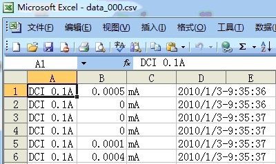 ![]() 当用户安装了SD卡后即可将采集的数据存储其上,当前的存储文件名位为data.csv(可以用Excel直接打开,由于是纯文本格式notepad也可以直接打开,编辑)。 在按下New键后data. csv就会被命名为data_000. csv data_001. csv等等,并且创建一个新的data. csv用来保存后续的数据,一般情况下,建议用户完成一组测量后按下先按下Str停止存盘,选择新的功能或量程,按下New切换文件,并再次按下Str开 启数据保存。 ![]()
