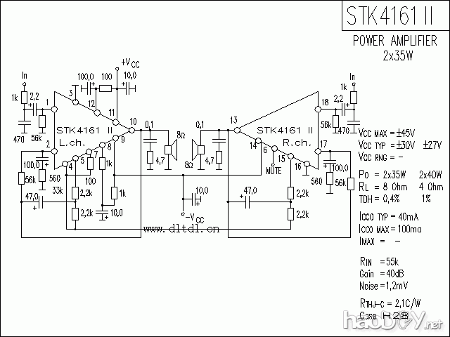 废话少说 淘宝上化了一月工资的百分之一就买了两块拆机的STK4161v的板子。对照了下PDF资料接法基本相同。区别在于反馈网络多并联一个电阻和电容(小日本的电路基本都有这几个元件估计是认为修饰声音用的),另外在-30V输入端增加取样电阻通过串联一个二极管和电阻后接出(这个功能估计用于电平指示或过流检测)。 找了下论坛终于找到了各脚的接法。找了个变压器,电容等通电一试,OK!非常理想。