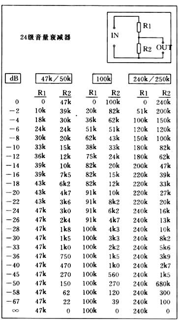 24级音量衰减器阻值
