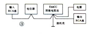 地线的接法见图3。是星形接地法。所有的地线集中在放大管阴极电阻处,并在此处接机壳。合理地设计地线走向,可以防止地线上不同电位的地电流相互窜扰。总的要把握一个原则,那就是输入端地线对机壳的电位最低。