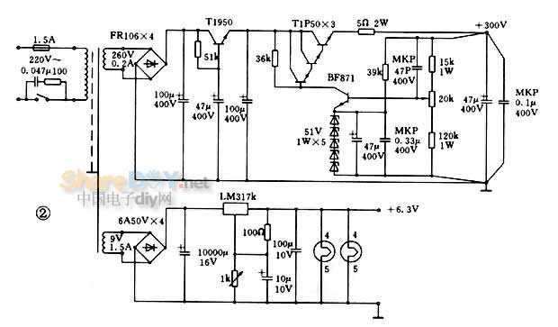整流二极管可选用FR系列的快速恢复二极管。用于高压整流的二极管耐压一定要大于450V,整流电流大于lA。 变压器可根据条件选用环型、C型或El型。在听感上,环型与C型都属于分析力高\清爽型,而E1型则属厚润型。笔者建议使用El型,以便与SRPP电路的声音特点互为补充。