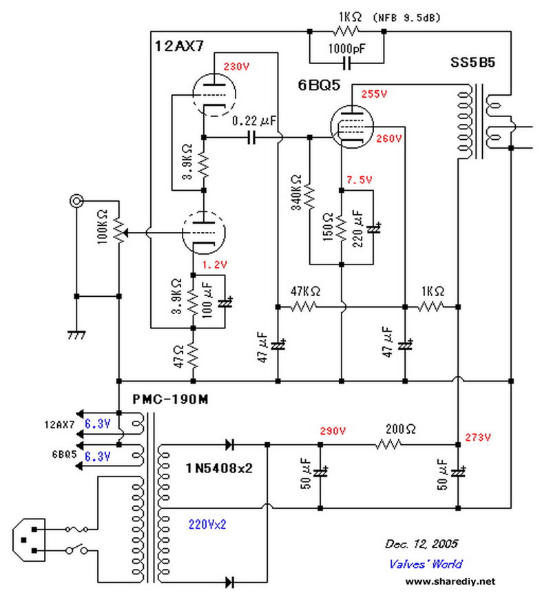 12ax7+6BQ5电子管功率放大器电路单端胆机 时间:2012-08-31 16:38 来源:未知 作者:admin 点击:次 (责任编辑:admin) 上一篇:6sn7+300B电子管功率放大器电路单端胆机 下一篇:6n3+6p1+irf630电子管 18w单端胆石输出胆机