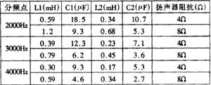 我们在附表中列出了在不同扬声器阻抗、不同的分频频率下的电感与电容的数值。