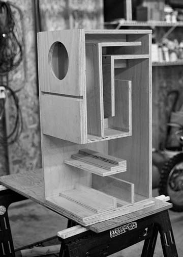 This is one of those things you just have to design by ear. No computer simulations here. I had tried simulating it with the help of software but what measured good and what sounded good were two different worlds. All that is used here is a simple notch filter to lower the midrange output level to match the bass and treble better. Even though the drivers used are rather cheap I would advise to use the best filter components you can get (there are only three per speaker so I won’t cost that much). The inductor must have an air-core for no saturation and low distortion. The lower Rdc the better, it improves bass response. It is amazing how sensitive the capacitor is, using a standard Audyn Cap MKP or similar is a waste! A good price/quality ratio is achieved with a LeClanché or Solen Fast Cap. When a high-end Audyn Cap Plus, Mundorf Supreme Cap or Hovland Musicap is used the amount of extra clarity and detailing is unbelievable. I used a metal oxide resistor, here again personal taste will determine what is needed, standard cemented resistors are out of the question.